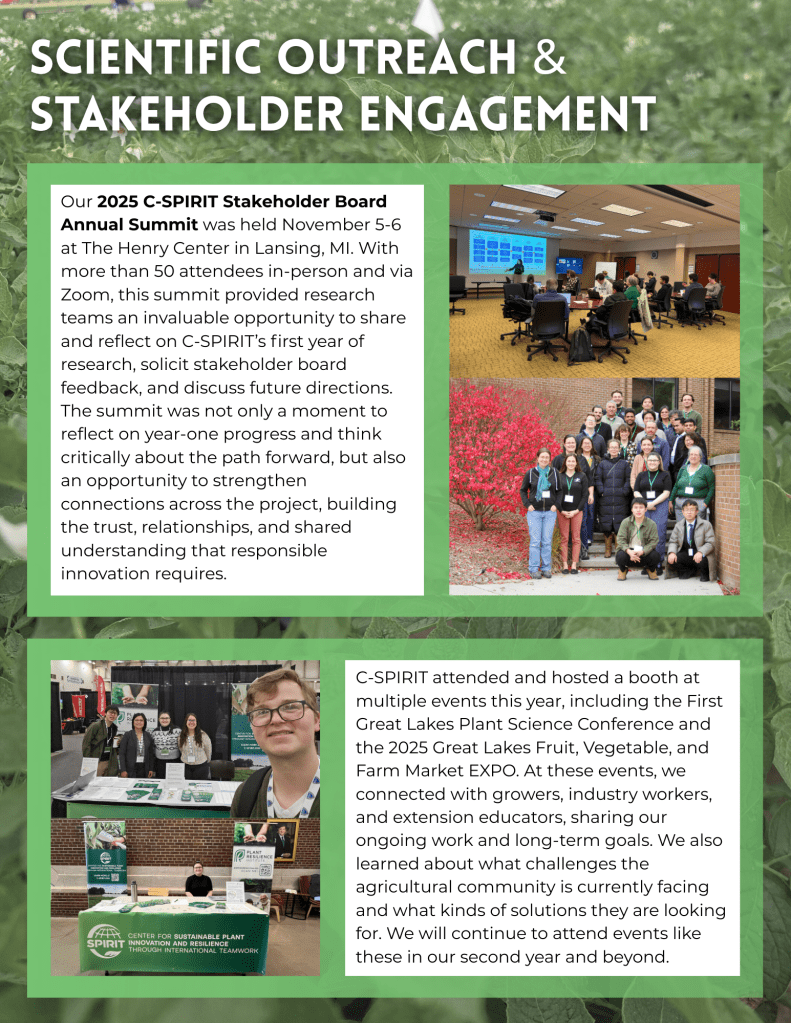 Our Center’s mission extends beyond scientific discovery to address public concerns, foster trust, and increase the acceptance of bioactive natural products and genome editing technologies. We engage with farmers, consumers, and stakeholders to understand their perspectives and inform our approach to sustainable agriculture.