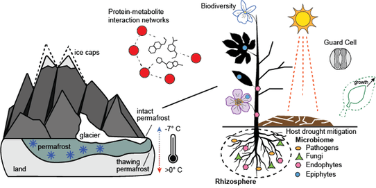 A schematic representation of sample collection from diverse ecosystems, across plant species and stress conditions. We will also tap to the existing datasets, such as those that highlight protein-metabolite interactions.